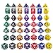 5 Sets of Polyhedral Dices, 7- Die D&D Dice in Each Set, 5 Colors Contains Green & Black, Red & Black, Blue & Black, Purple & Blue, Yellow & Green