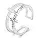 Simple Fashion Double Layer Cross Open Ring,Crystal Cross Finger Rings for Couple Women Girl