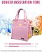 Eye-Catching Design: Make a stylish statement with our insulated lunch bags for women in trendy pink. Its vibrant color adds a touch of flair to your daily routine, ensuring you stand out from the crowd while enjoying your meals.