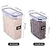 PORTABLE POURING with HAND GRIP: this small and convient container wich can storage around 2.5KG rice.It designed with ergonomic grip. Food can be poured directly out of the mouth. Reduce the steps to open the lid. The measuring cup can help you check how much food you get. Portable handle for you to take it go anywhere you want