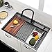 【Drop in Splash Guard Workstation Kitchen Sink 】: Drop in Splash Guard Workstation Kitchen Sink, Tracks on the front and back of the sink allow to place and slide,including the cutting board and colander on the sink, It can be switched to a cutting board or a separate sink mode. You can to slide the accessories across the sink to streamline meal prep and cleanup with out losing space on the kitchen counter.
