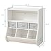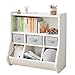 PLENTY OF STORAGE: Featuring one large compartment for books, it has three bottom bins that are ideal for toys, stuffed animals, art supplies, and more. The three removable drawers in the middle compartments are great for playing while organizing.