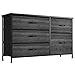 Durable Fabric - The wide dressers chest of drawer's front side is constructed with scratch-resistant cationic fabric, and other sides are made of high-quality non-woven synthetic fabric. They are breathable and soft, environmental protection and safe, suitable for nursery, playroom, bedroom, living room, closet, hallway, etc.