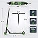 Scooter deck: W100mm*L582mm*H180mm. Lightweight decks don't last as long as heavy decks, but are easier to make tricks with.Griptape can be replaced as often as you like,Remember to clean the deck before applying.The one-piece welded connection between fork and deck makes the impact capacity up to 1800 lbs, solid enough for tricks in skate parks. The maximum load capacity up to 220 lbs.Aircraft-grade 6061-T6 heat-treated aluminium deck with Mn steel rear brake mechanism.