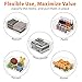 16 durable plastic storage bins, 12 standard and 4 large (equivalent to 8 standard bins) interchangeable storage bins. BPA and phthalate free.