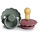 FRIGG natural rubber pacifiers have been thoughtfully designed for your baby's comfort. The outward curve keeps the pacifier off their delicate skin, while features like air holes and a security handle ensure your baby stays safe.