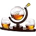 Hand blown elegant whiskey decanter dispenser featuring an etched globe design and antique ship in the bottle will undoubtedly enhance your drinking experience while making a bold impression