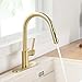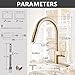 【BRUSHED GOLD KITCHEN FAUCET】The gold faucet for kitchen sink with pull down sprayer which can extend 19.7in, and the thumb-pressed spray head provides a high-pressure directional power spraying for various cleaning tasks, bringing greater convenience to kitchen operations