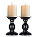 PREMIUM QUALITY: Beautiful, rust resistant, decorative candlestick holders. Black matte finish adds a vintage look. Safe, sturdy, solid iron, for use with 3x3 inch pillar candles. Good for indoor and outdoor use. Set of two iron plate candle holders. 4.75 inches diameter x .7 inches height.