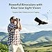 【Premium BAK4 Prism & Multi-layer Coated Optics] The FULLJA HD powerful binoculars are equipped with BAK-4 prism and optical FMC multi-layer broadband green film objective lenses to guarantee the key elements of an HD vision, brighter view, and crisp images. It also has low-light night vision (not suitable for complete nights).