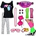 Package Included:1* I Love The 80S T-Shirt,1* Seven-Point Leggings,1* Fingerless Fishnet Gloves, 1* Earrings ,1* Headband Bow, 1* Necklace ,4 * Color Bead Bracelet,1* Waist Fanny Pack ,1* Shutter Shading Glasses.Meet You Demands For 80'S Costume Accessories .