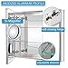 🔥Inside LED Light with door switch sensor makes it a lighted medicine cabinet when you open the door.🔥Mirrors on both sides of the door, interior walls & both side panels, which makes it a bathroom cabinet with mirror on all sides.🔥Three adjustable 8mm thick tempered glass medicine cabinet shelf.🔥Built-in 20Amp dual outlet and USB 2.0 port for phone or shavers charging inside this bathroom mirror medicine cabinet.🔥3 TIMES AMPLIFY MIRROR makes it super easy for makeup tasks.