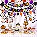 Packaging set : 6pcs Honeycomb Ball;6pcs paper swirls;1pcs paper Confetti Circle Garland banner;1pcs triangle bunting flag.1 pcs happy birthday banner.A big set perfect for your Halloween theme birthday party decoration.