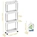 [Multi-purpose Use]:The 4 tier storage rolling cart with plenty of storage space to easily hold a variety of items such as tissues,magazines,seasonings, snacks or toiletries.Suitable for closets, kitchens, bathrooms, garages, laundry rooms, offices or in-between your washer and dryer.So wide range of applications!
