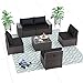LUXURY COMBINATION:Kullavik patio conversation set includes 1 corner sofa,2 middle sofas,1 right sofa,1 left sofa with Cushions,a tempered glass table,propane fire pit table with glass wind guard,fire glass,slide out tank holder,lid,table cover.You can easily put them together according to the instructions with all included necessary tools and hardware.Please do not tighten the screws until you align all the holes of the wicker chair.