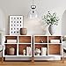The cube storage organizer has contrasting solid wood that pairs smoothly with its glossy white frame and solid veneer back panel.