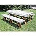 The efficient elastic edge design includes a 3-piece set: 1 tablecloth and 2 bench seat covers. The tablecloth stretches to fit any 72" X 30" picnic or trade show table, and the bench covers stretch to fit any 12" X 72" bench. All with an elastic b'y so it will hang tightly over tables and benches! No pulling, tugging, tripping or anything getting blown over and moved when people move away from the table.