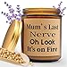 Funny Candles Jar - The candle jar is decorated with a playful and humorous sticker that reads "Mum's Last Nerve, oh Look. It's on Fire." This unique touch adds a fun element to the candle and is sure to bring a smile to your mom's face every time she sees it.