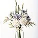 【Exquisite Size】:Fake flowers bouquet is composed of 3 white dahlias,3 blue dahlias,2 eucalyptus,2 bamboo leaves,and 2 long stem plants.The overall height is 15 inches,suitable for DIY flowers arrangement