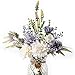 【Exquisite Size】:Fake flowers bouquet is composed of 5 white roses,3 blue babysbreath,2 eucalyptus.The overall height is 15 inches,suitable for DIY flowers arrangement