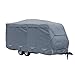 [ HEAVY DUTY DURABLE FABRIC ]: Fits 17' - 19' RV and travel trailer (Please measure your RV before order). The RV cover is made with 4 layers top panel for maximum protection against rain, snow and wind. The trailer cover can be folded and stored in storage pouch, fits into anyplace and anywhere in your camper RV Trailer. The storage pouch can be the propane tank cover or tongue jack cover when not in use.