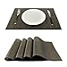 Placemats Material:High quality and environmentally PVC Woven Vinyl,These PVC Place Mats are made of 70% PVC and 30% polyester yarn,which makes this place mats sets are co-friendly and safe for dinner table use