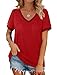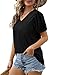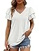 ✦Features: Double layered ruffle sleeves, slightly puffy, trendy eyelet pattern, add a touch of feminity to this loose fit v neck t shirts.