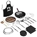 14-Piece Set With Bonus Hot Pads - This carbon steel wok set includes wok with wooden lid, a wok spatula, slotted spatula, spaghetti spoon, slotted spoon, rice spoon, soup ladle, carving fork, wok brush for easy cleaning, wok ring, drain oil rack, chopsticks, apron, and 4 hot pads.