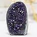 🔮SPECIFICATIONS: 0.5-.07 lb (350grams) Uruguayan Amethyst Crystal Geode cut from Basalt with flat base so it will stand up for display. EACH STONE IS UNIQUE IN SHAPE BUT ALL DEEP PURPLE COLOR. What you will receive: One Healing Crystal Guidebook, One Healing Crystal Grid, One Black Velvet Bag.
