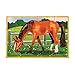 BEAUTIFUL FARM-THEMED JIGSAW PUZZLES: The Melissa & Doug Farm Jigsaw Puzzles in a Box features 4 wooden puzzles: a Horse, Chicken, Pig, and Cow.