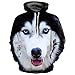 Fashion casual pullover Animal 3D Siberian Husky Print hoodie in the front and back,features drawstring hood,long sleeves,front kangaroo pocket