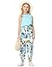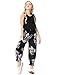Features:Girls casual rompers,solid top halter design,self tie up,elastic waist,2 side pockets,floral printed long pants,length to ankle,elastic ruffle leg cuffs,loose fit jumpsuits for kids.