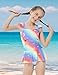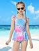 ⭐Features:Girls one piece swimsuit,short sleeve,zipper neckline,vibrant and cute print for sweet girly vibes,ruffle skirt,inner shorts attached under the skirt,Provides maximum comfort and safety.