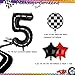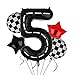 🏎🏁Package/Size: 1 pcs 40 inch racecar number balloon 5,2 pcs black and white chequered balloon,2 pcs star balloon,1 pcs ribbon.
