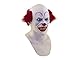A traditional red clown nose and a creepy grin with yellow pointed teeth.
