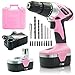 All inclusive drill set: Tool kit includes (1) 18 volt pink power drill driver, (1) tool case, (1) battery charger, (2) NiCad 18V batteries, a drill bit set, and a three-year warranty