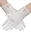 The fascinator headband is one size fits all with hair clip and headband; Stretchy lace gloves; Imitation pearl necklace length: 16", extension chain length: 2", size of per pearl is 8mm.