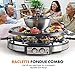 Fondue&Grill Combo for Family Fun - Combining 600ML brushed stainless steel fondue pot, square table grill, and 8 raclette pans, this combo is deal for having fund with your families or friends. This Fondue and Grill combination is perfect for melting cheeses, chocolates, cooking liquids in the fondue pot and grilling meat, seafood, vegetable and more food on the grill. Enjoy different kinds of delicious food on one fondue pot set!