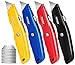 What you will receive: 4 utility knives and 10 box cutter blades, and these retractable box cutters are available in four different colors: red, black, yellow, and blue.
