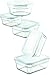 Glasslock Set Includes: 1 round containers (3.1cups/ 733mL), 2 rectangular containers (1- 6.3cups /1.5L, 1- 3.5cups /828ml), 2 Square containers (1- 3.3cups/781ml, 1- 1.5cups/355ml), 5 matching Blue lids Total 10 piece set, Ideal for serving and storing