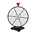 😄 Miniature prize wheel stands 15" tall and 12" wide. Easy to carry spin the wheel game with stand can be placed on any table and when done, takes very little storage space. The small spinner wheel fits nicely on counters and tabletops. Manufactured in America.