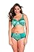 Printed cups, with complementary teal colored neck edge, straps, underband and back wing.