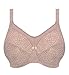 T-shirt friendly full coverage cups fabricated from a double layered molded simplex provides support and a beautiful naturally rounded shape