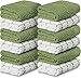 Set includes 12 cotton dish towels with 6 Sage Green and 6 White dobby weave style kitchen towels measuring 15 x 25 inches