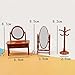 Miniature Dollhouse Accessories Size Details: Bed Size: 10.3cm x 8.5cm x 5.1cm/4.06" x 3.35" x 2.01", Dresser Size: 6.4cm x 2.4cm x 8.7cm/2.52" x 0.94" x 3.43", Mirror Size: 3.9cm x 2.9cm x 8.5cm/1.54" x 1.14" x 3.35", Clothing Rack Size: 2.9cm x 8.3cm/1.14" x 3.27", Chair Size: 2.3cm x 2.7cm x 5.2cm/0.91" x 1.06" x 2.05", Desk Lamp Size: 1.7cm x 3.3cm/0.67" x 1.3", Nightstand Size: 3.4cm x 2.7cm x 3.2cm/1.34" x 1.06" x 1.26".