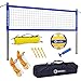 QUICK SET UP- The beach volleyball set comes with everything you need for playing volleyball, a regulation-sized net, a soft PU ball, adjustable poles, plated steel ground stakes, a high-visibility yellow boundary, and an air pump. Playing volleyball can never be so easy.