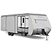 [Durable Material]: Upgraded the top panel fabric to extra thick 600D Oxford fabric and the side to 300D 175g Oxford fabric, mixed with Anti-UV Composite, PU coating and waterproof membrane. Water resistant to 2000mm. Protect your RV from the damaging effects of sun, rain, sleet, and snow. The secure design and ultra-durable construction of this camper cover will keep your prized investment protected for years.