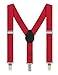 The water-resistant 1 1/2" wide poly-blend elastic suspender straps come in a BRIGHT RED color