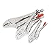 Set includes 10" straight jaw, 10" curved jaw, 7" curved jaw with wire cutter, 6" long nose pliers, and 5" curved jaw locking pliers