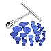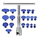 Align the T-shaped repairer and press the drawing gasket with hot melt glue, pull the sliding rod backwards to pull up the dent;(Note: :The 18 gaskets are all made of hard plastic and have no suction itself. It is necessary to melt the glue stick with a hot-melt glue gun and apply it to the gaskets for use)